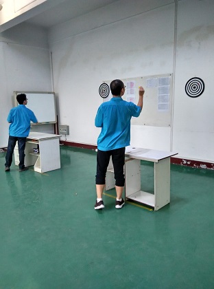 ??????? 下午4點(diǎn)鐘,外邊溫度仍在30度以上,但絲毫未減弱大家參加活動(dòng)的熱情。此次活動(dòng)以團(tuán)體項(xiàng)目為主,過程中穿插個(gè)人項(xiàng)目。團(tuán)體項(xiàng)目讓大家認(rèn)識(shí)到團(tuán)隊(duì)的作用,提高合作意識(shí)。在團(tuán)體活動(dòng)中,大家為積極為本班組爭(zhēng)榮譽(yù)。團(tuán)體項(xiàng)目共分三輪,第一輪是‘團(tuán)體飛鏢賽’,需要隊(duì)員有集體榮譽(yù)觀,為了團(tuán)隊(duì),耐心、用心的投擲出好成績(jī);第二輪是‘跳躍彩虹’比賽。在比賽中,需要團(tuán)隊(duì)做好分工,誰甩繩,誰先跳,誰后跳,需要計(jì)劃好,才能得到好成績(jī)。第三輪團(tuán)隊(duì)比賽是‘瘋狂爆破’,要求兩人用背運(yùn)氣球,到終點(diǎn)后用背擠爆。此項(xiàng)目是讓大家最撿樂的比賽。比賽中,狀況百出,有的運(yùn)到半路氣球飛了,有的不到終點(diǎn)氣球爆了,還有的到了終點(diǎn)就是擠不破氣球,各種出其不意的狀況讓大家笑得前仰后合。