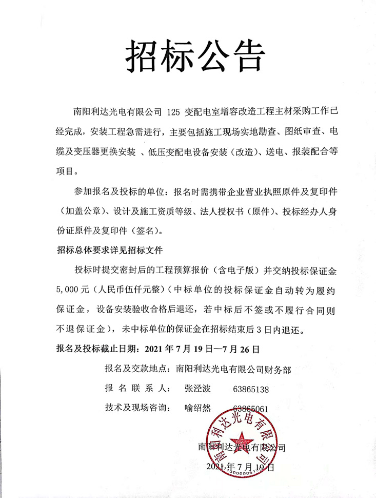 - (2025-07-17)利達(dá)光電公開招聘財(cái)務(wù)部部長(zhǎng)擬錄用人員公示