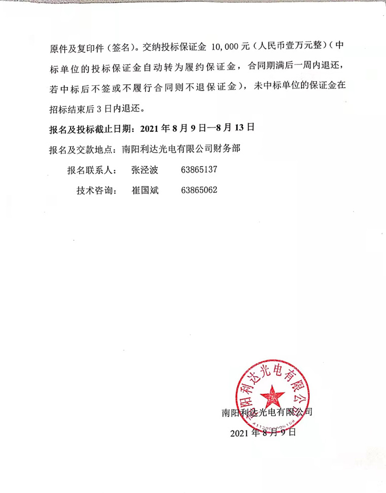 - (2025-07-17)利達(dá)光電公開招聘財(cái)務(wù)部部長擬錄用人員公示