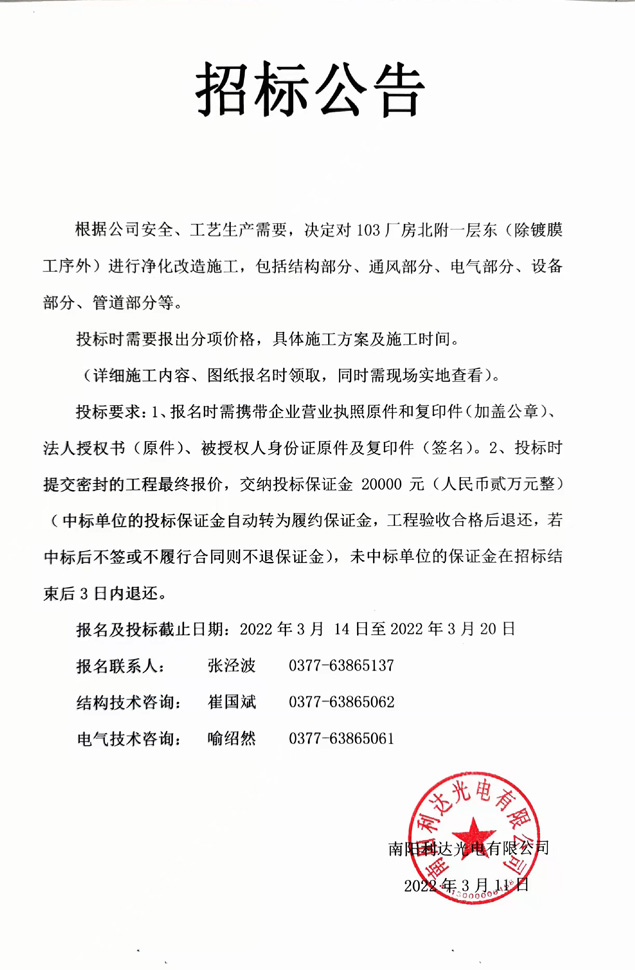 - (2022-09-29)光電新區(qū)三期廠房一層裝修施工的招標公告